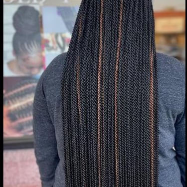 Senegalese twists use silky extensions twisted into natural hair for a smooth, rope-like finish. Very Airy!
